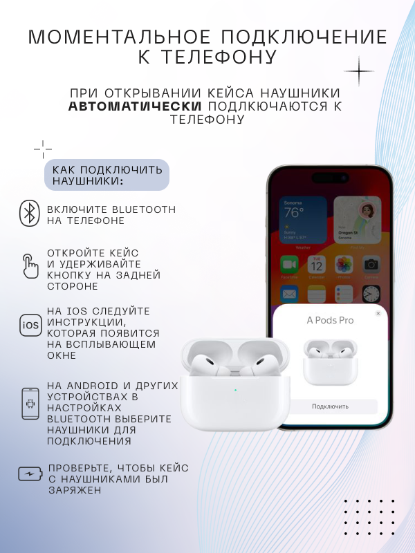Наушники беспроводные с шумоподавлением A Pods Pro 2/ bluetooth интересное: