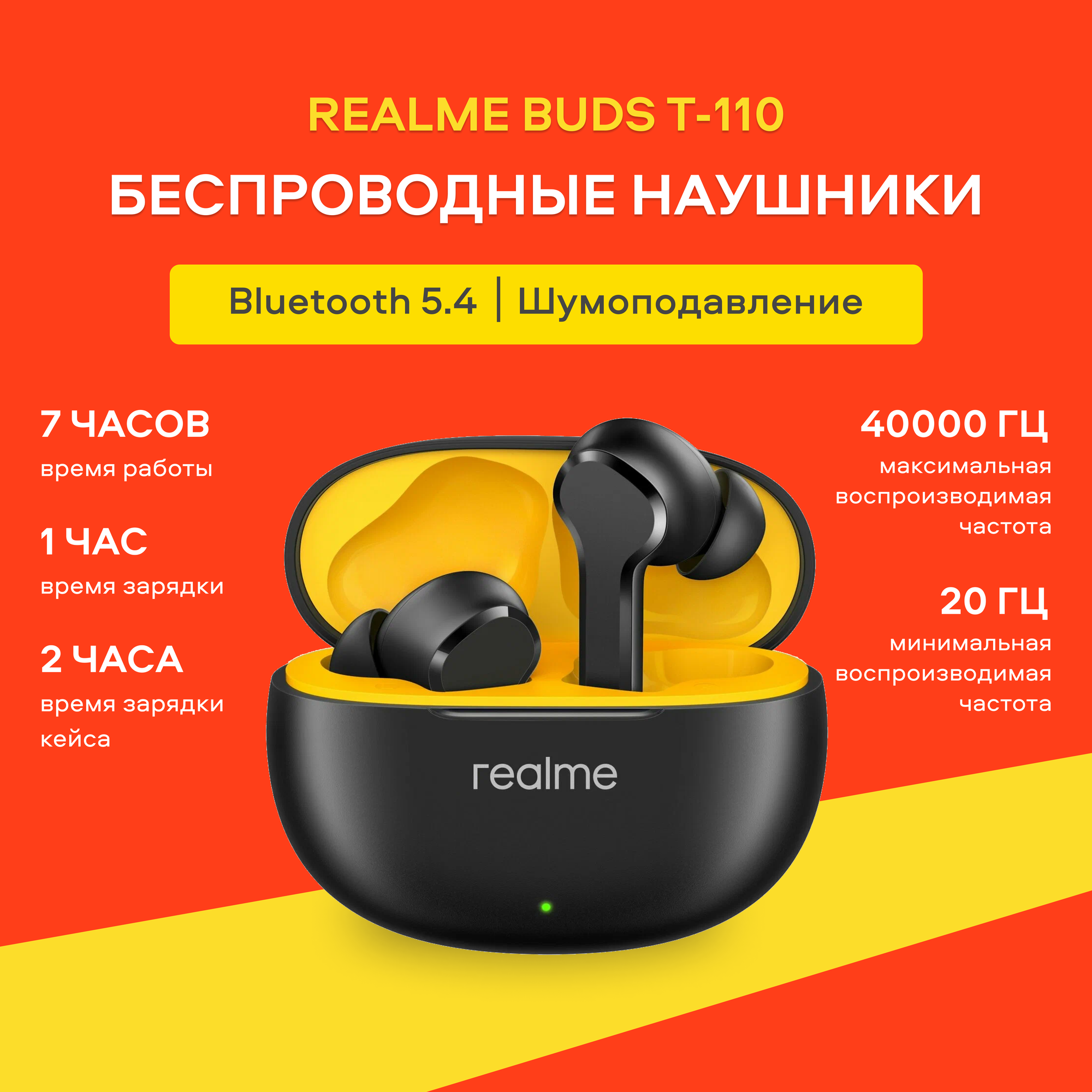 Наушники беспроводные Realme Buds T110, внутриканальные, с шумоподавлением