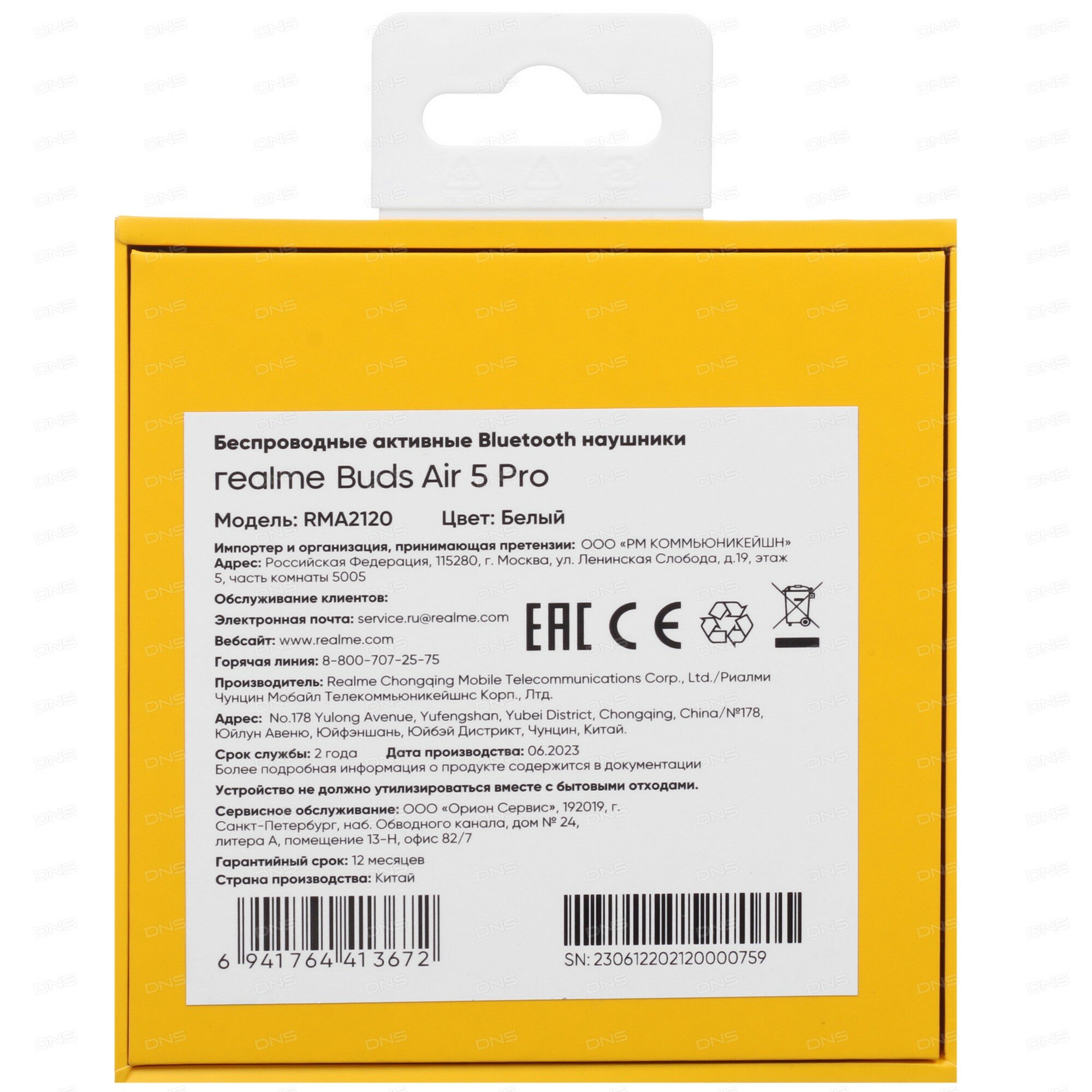 Наушники REALME RMA2120 (Buds Air 5 PRO) цвет:белый