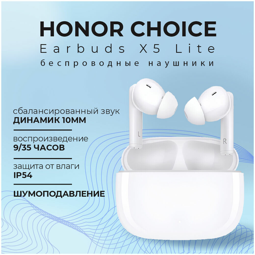 Наушники TWS Honor Choice Earbuds X5 Lite с шумоподавлением, белые