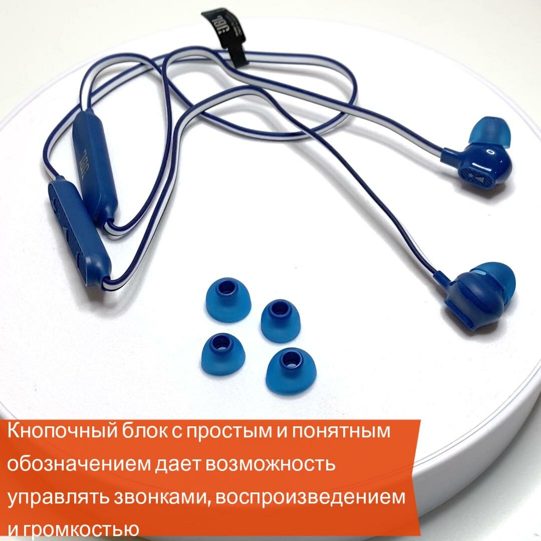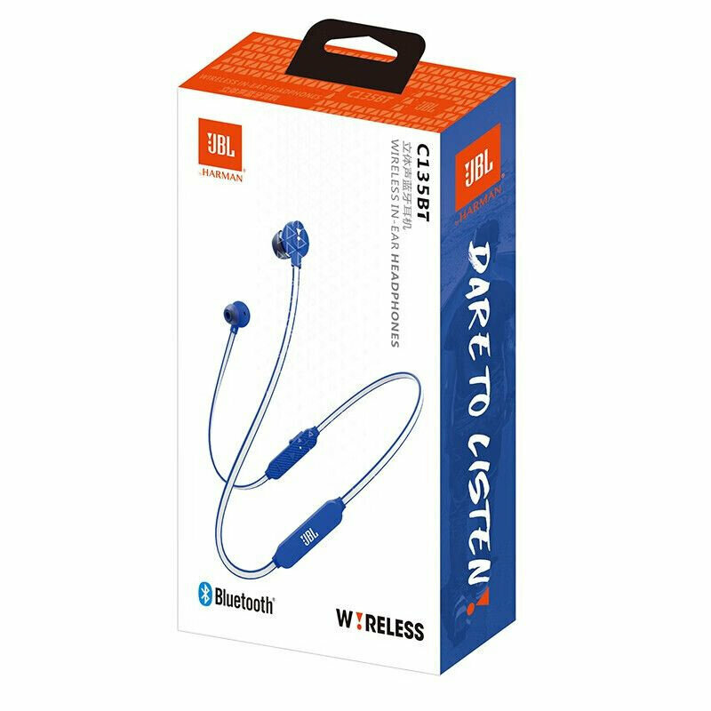 Купить Наушники JBL C135BT, беспроводные, внутриканальные, шейный обод, влагозащита IPX4, синие