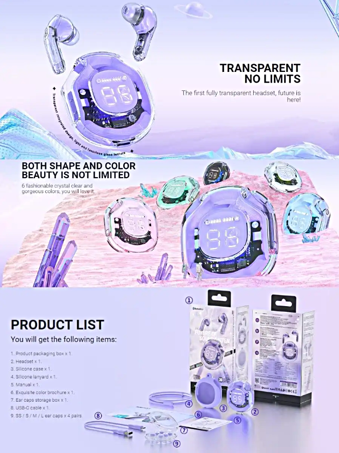 Ниже Вы можете прочитать отзывы на Беспроводные наушники TWS T8 ACEFAST CRYSTAL, Cенсорные Bluetooth наушники для смартфона, Подсветка, Мятный, ознакомится с подробными характеристиками, посмотреть интересные обзоры и фотографии на Беспроводные наушники TWS T8 ACEFAST CRYSTAL, Cенсорные Bluetooth наушники для смартфона, Подсветка, Мятный.
