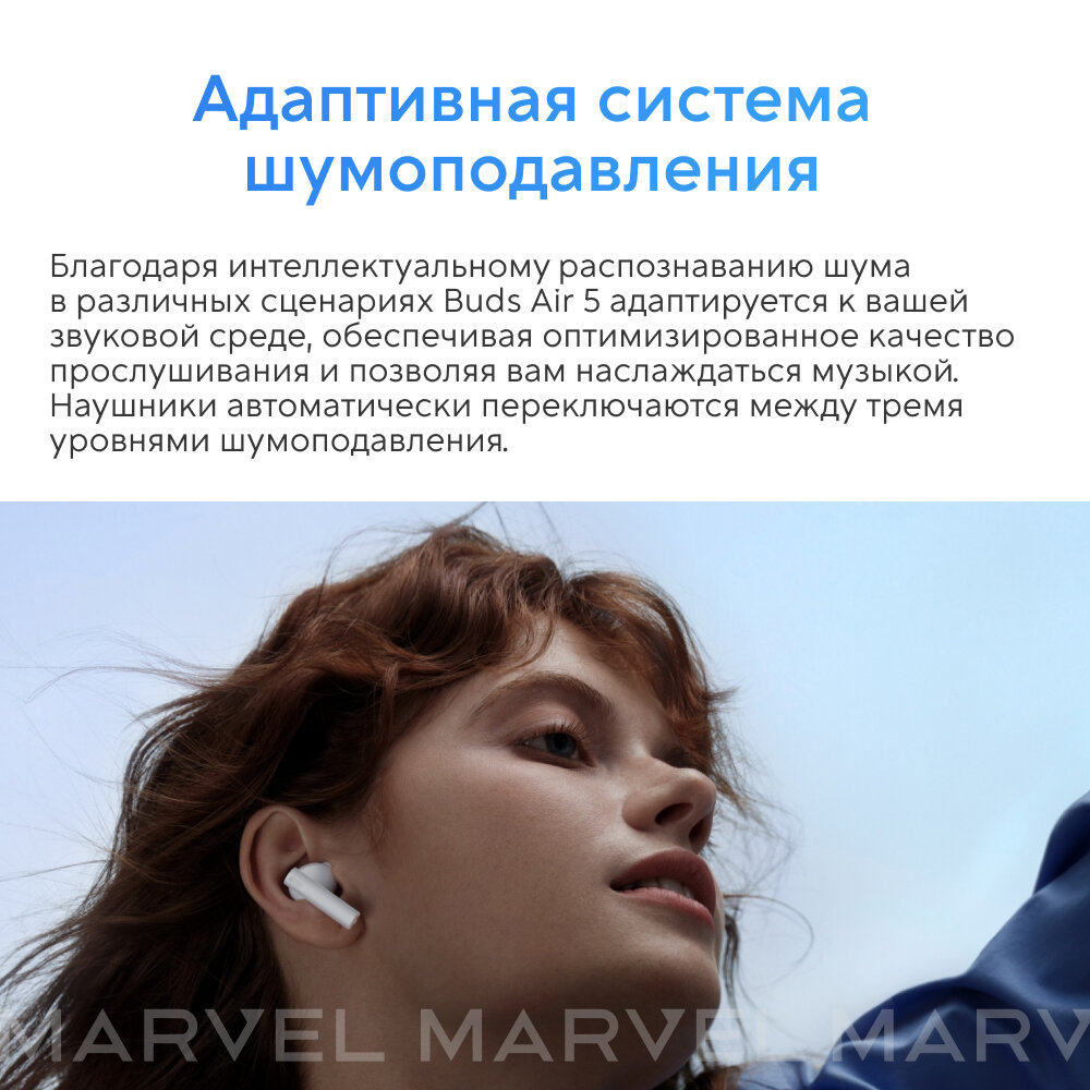 Настоящие беспроводные Bluetooth-наушники Realme Buds Air5 имеют шумоподавление на 50 дБ и сверхдлительное время автономной работы.