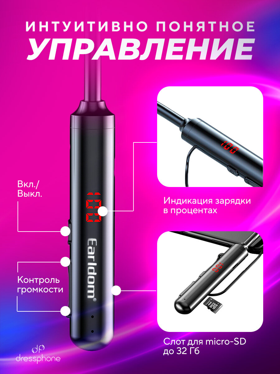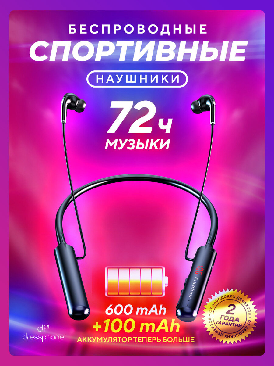 Наушники беспроводные/bluetooth наушники/спортивные наушники Earldom BH50 (60 часов любимой музыки)