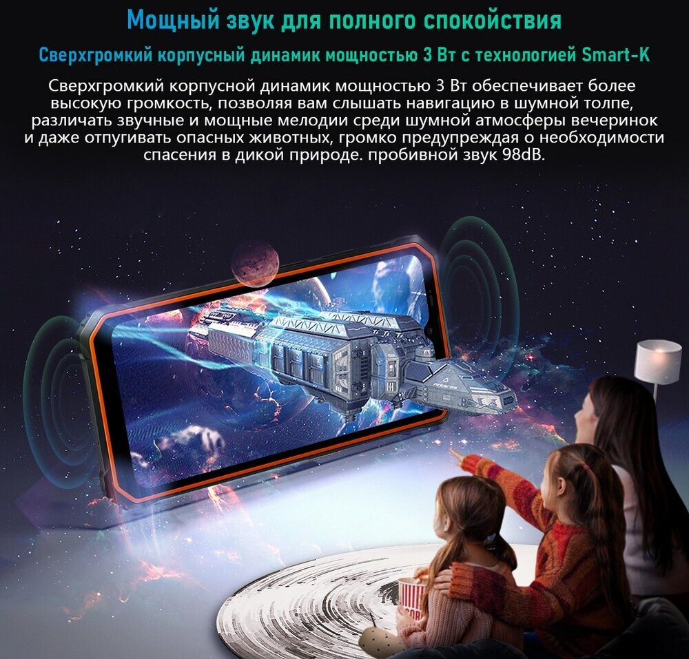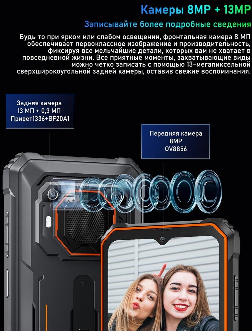 Смартфон Blackview BV6200 Pro 6/128 ГБ, 2 nano SIM, черный/оранжевый