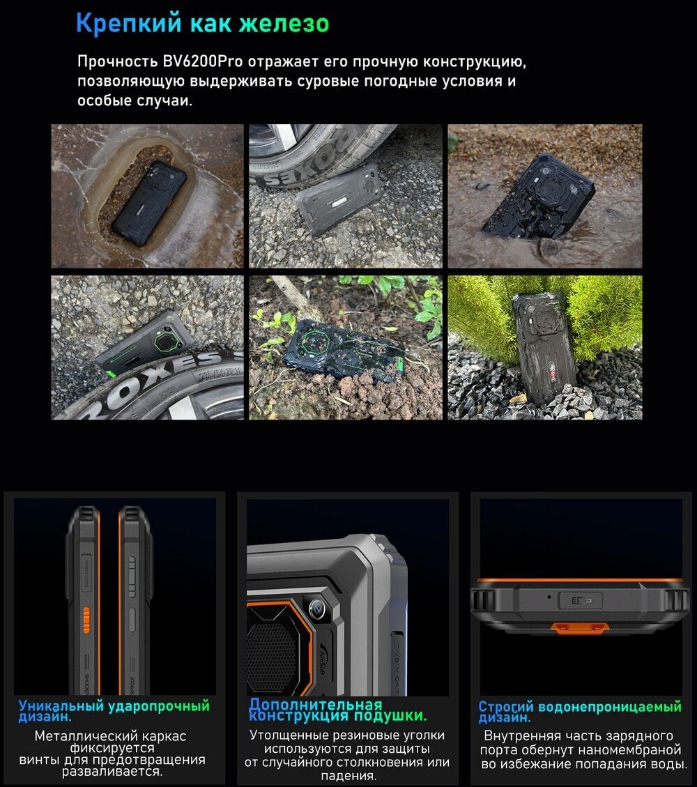Смартфон Blackview bv6200 pro, 6/128ГБ, global, Blackview, bv6200 pro, Глобальная версия, Смартфон, Черный, 6ГБ, 128ГБ, global, Новый, 01.07.2023
