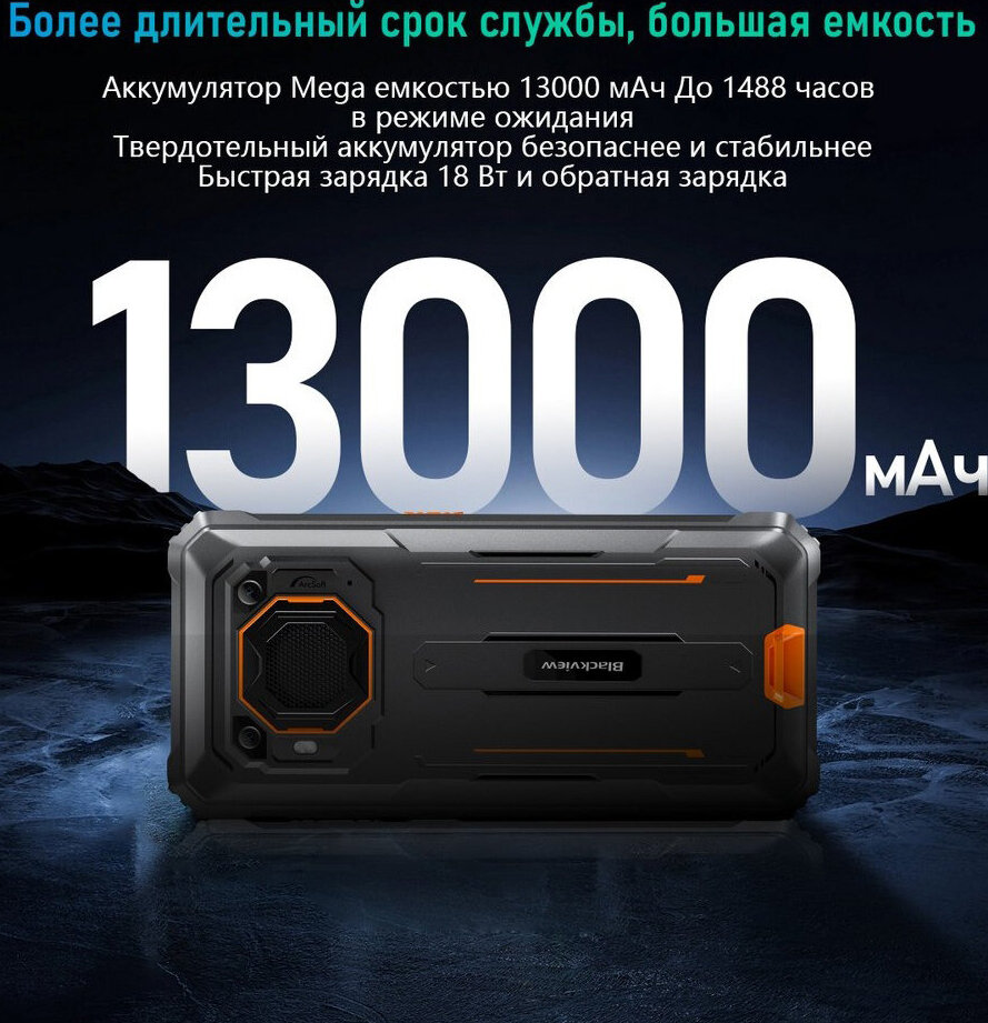Смартфон Blackview BV6200 Pro защищенный, Android 13, 6,56 дюйма, Helio P35, 6+ 128 ГБ, 13000 мАч, быстрая зарядка 18 Вт