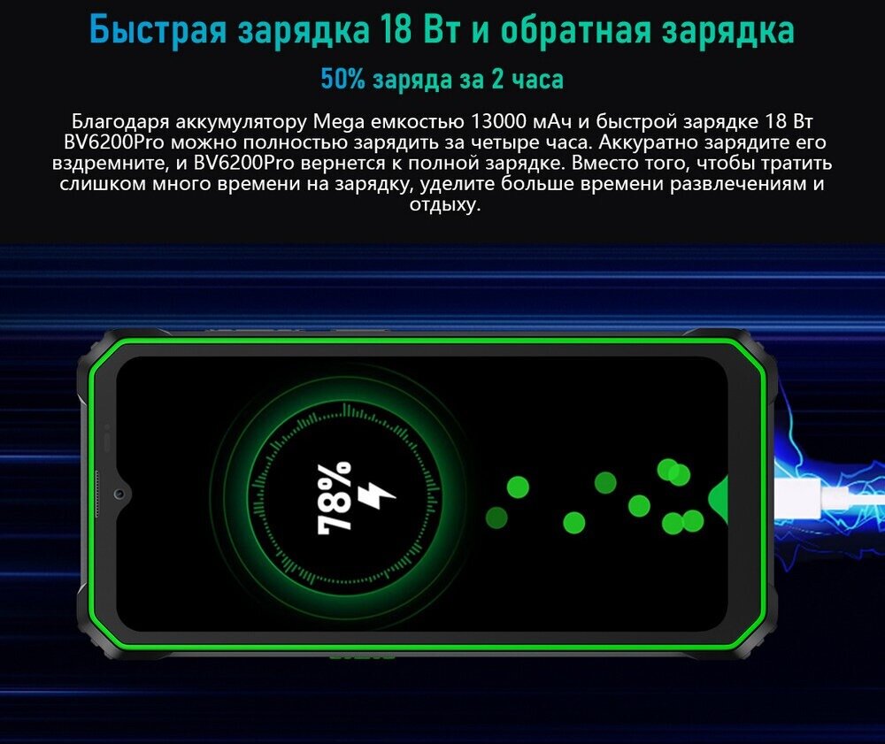 Смартфон Blackview BV6200 Pro 6/128 ГБ, защищенный, Android 13, Dual SIM, 6,56 дюйма, ,13000 мАч, быстрая зарядка, зеленый