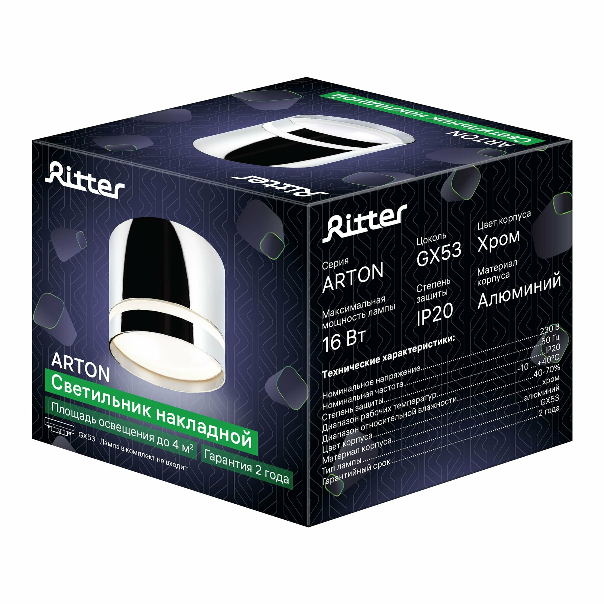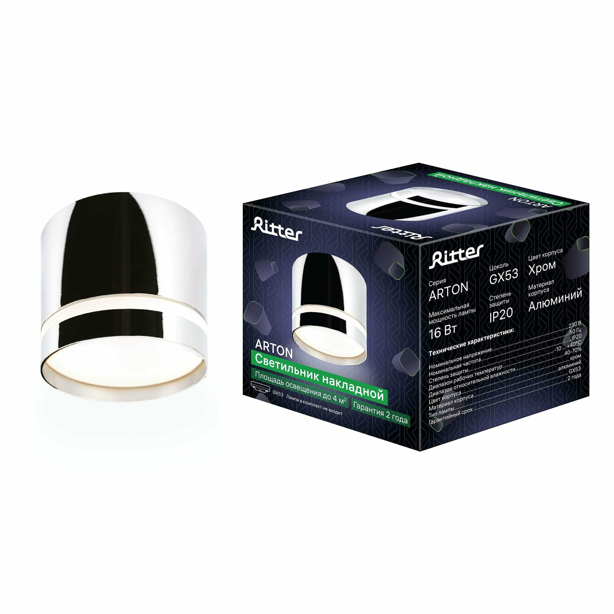 Купить Ritter Светильник спот накладной Arton, GX53, цилиндр, 85х80мм, хром, 59944 9