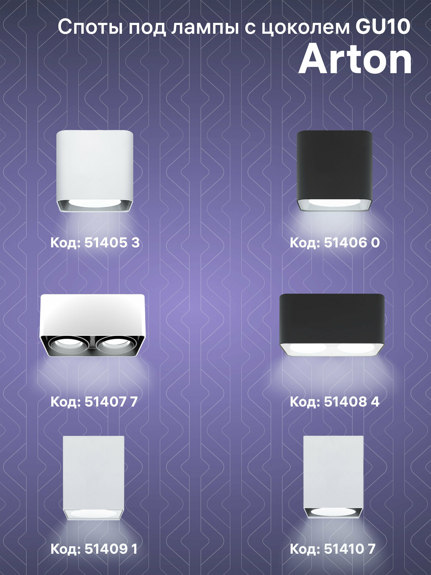 Светильник накладной Arton, прямоугольник, 200х100х80мм, 2хGX53, алюминий, белый, Ritter, 51403 9