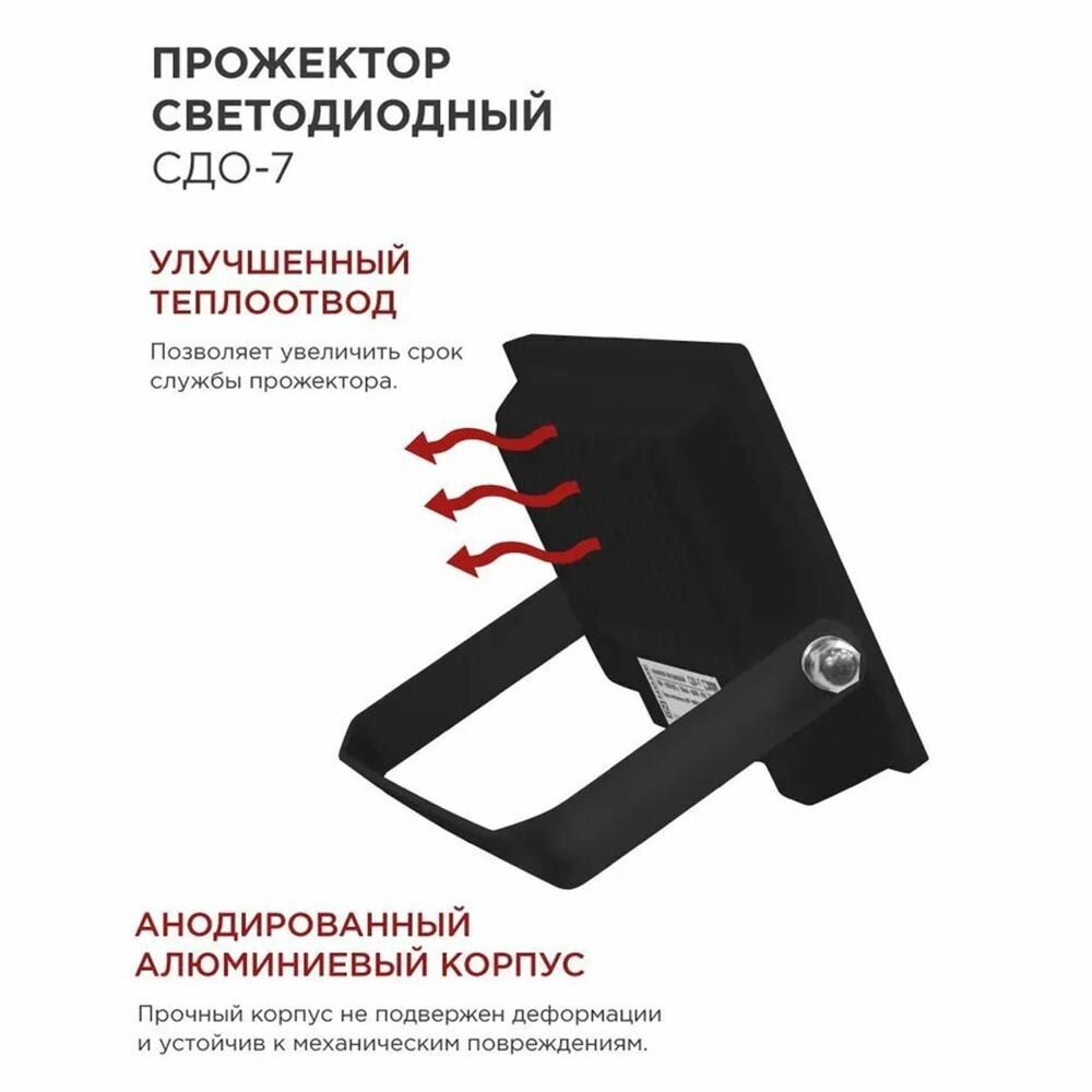 Прожектор светодиодный СДО-7 20Вт 230В 6500К IP65 черный