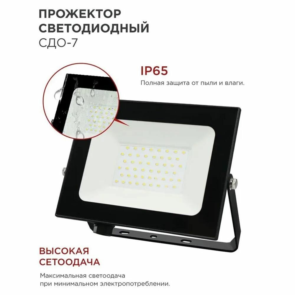 Прожектор светодиодный СДО-7 50Вт 230В 6500К IP65 черный IN HOME