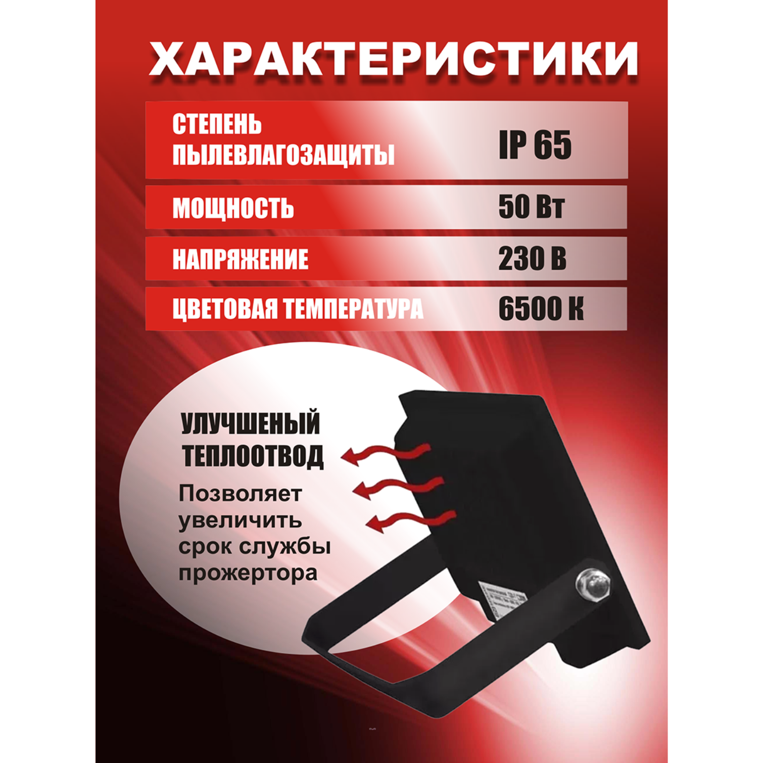 СохранитьПрожектор светодиодный СДО-7 50Вт 230В 6500К IP65 черный IN HOME - 1 шт интересное: