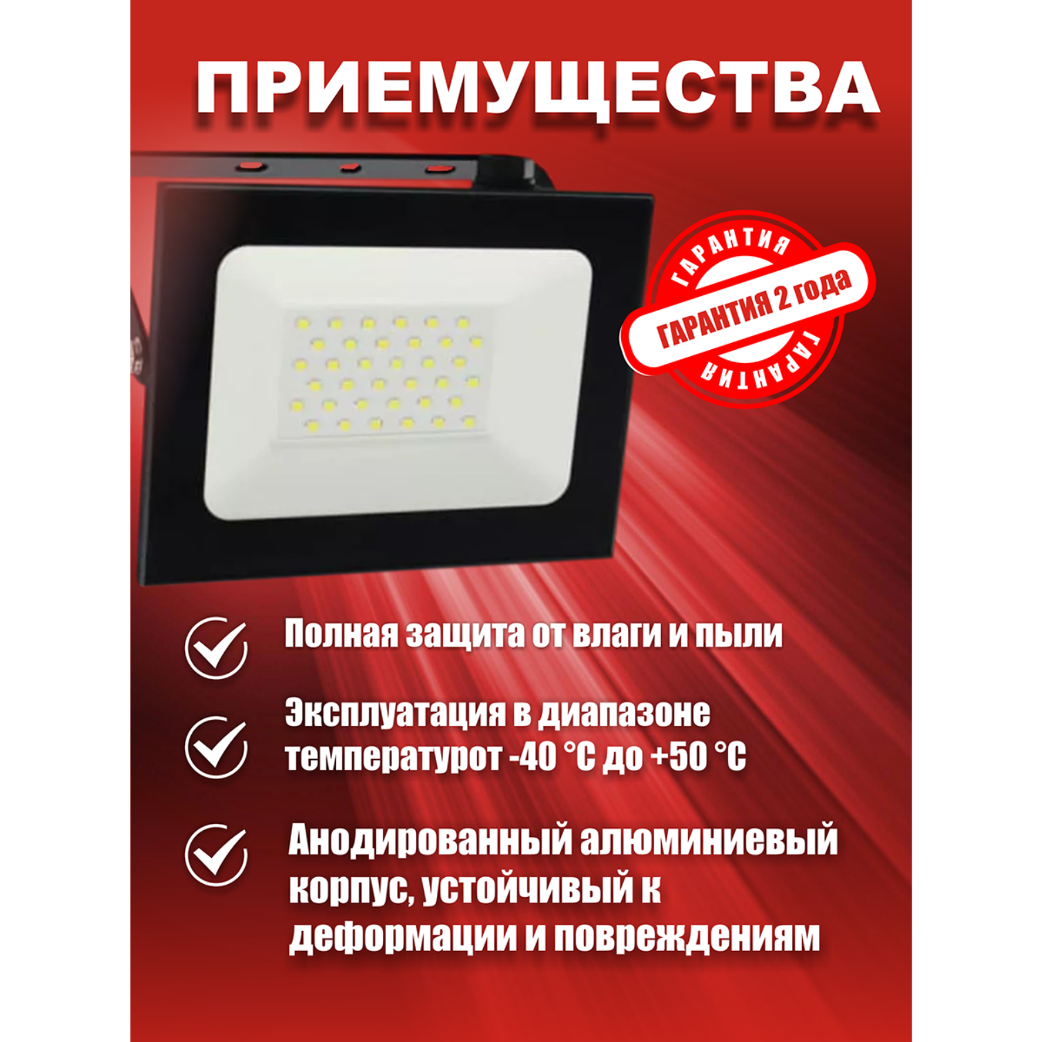 Прожектор светодиодный IN HOME СДО-7, 30 Вт, 230 В, 6500 К, IP65, белый