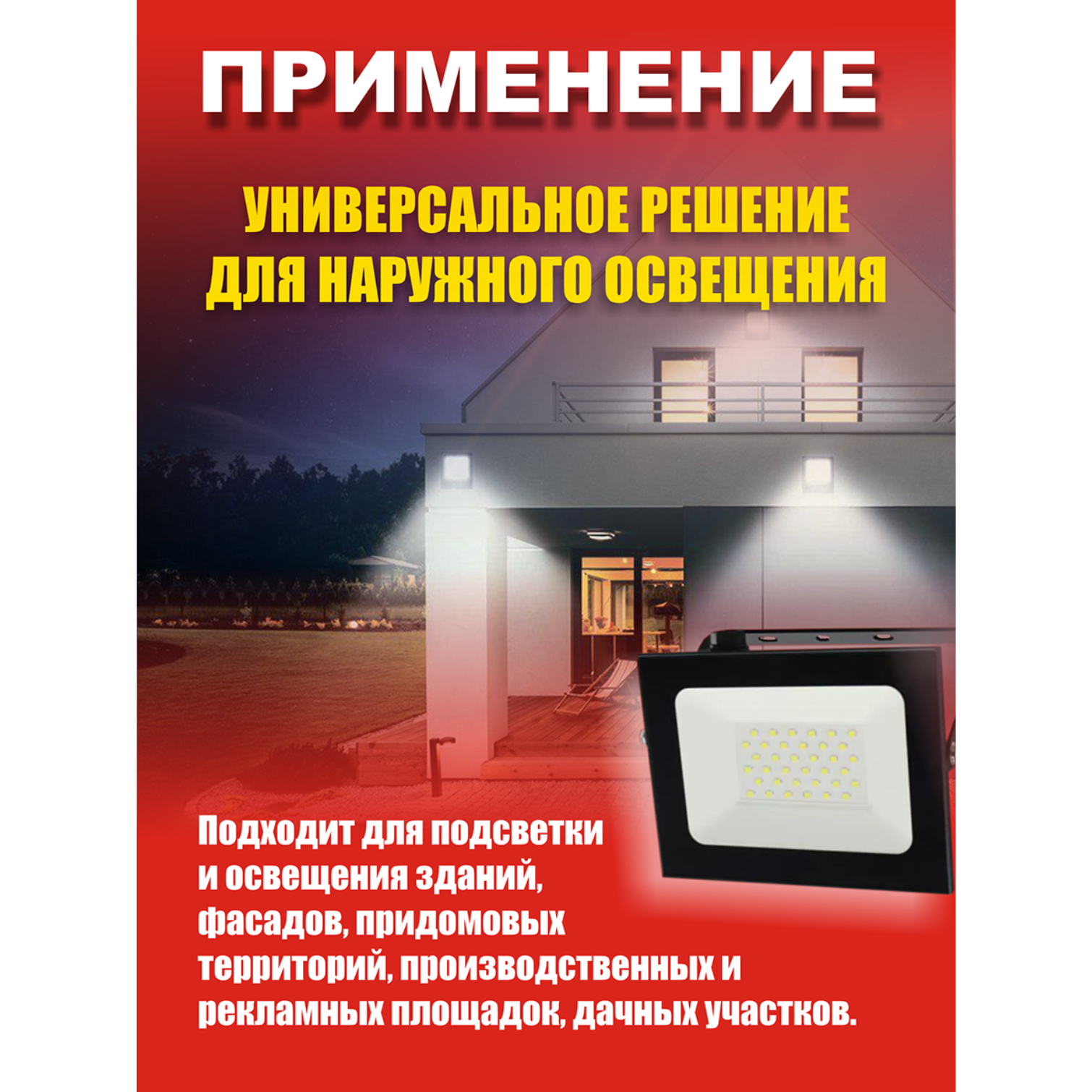 Прожектор IN Home СДО-7 20Вт 230В 6500К IP65 черн. 4690612034614