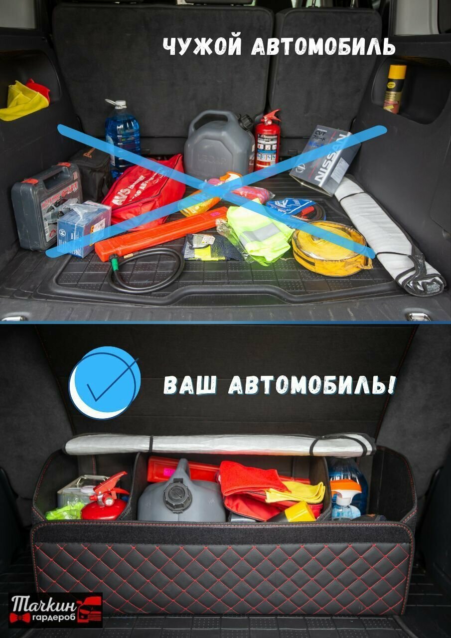 Органайзер для хранения в багажнике для машины/ Органайзер автоаксессуар 80*30*35 квадрат красный строчка красная окант черн