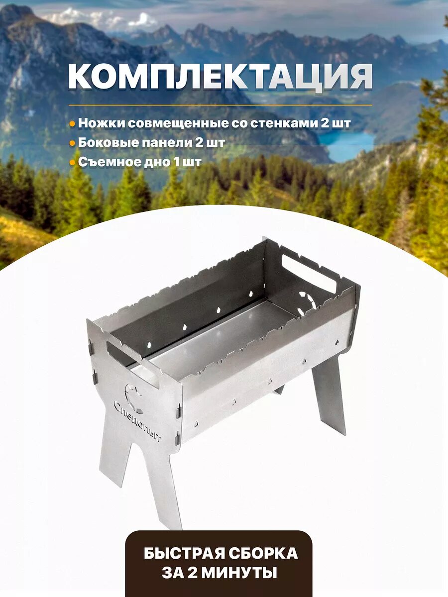 Мангал складной походный Следопыт, 490х310х370 мм, толщина 2 мм, многоразовый, без шампуров / Мангал дачный PF-GR-01