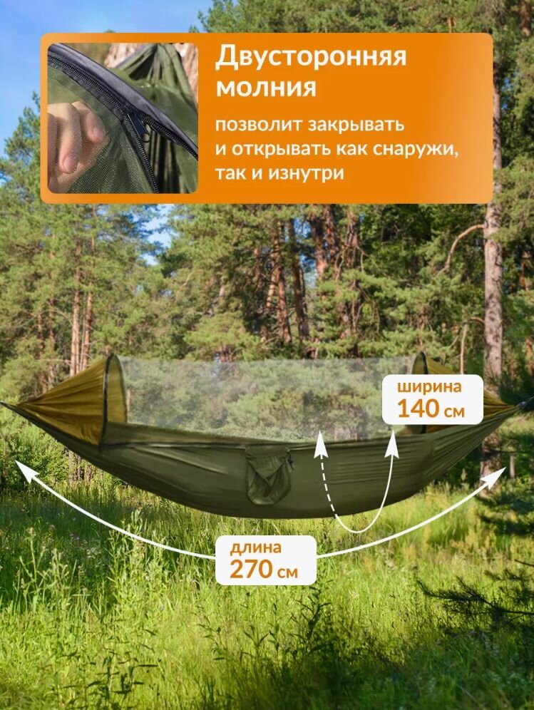 Гамак подвесной уличный - двухместный с москитной сеткой