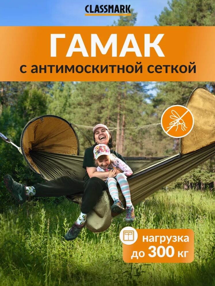 Купить Гамак для дачи Classmark подвесной и уличный, туристический и домашний для похода двухместный, отдыха и кемпинга для взрослых и детей, с москитной сеткой, нагрузка до 300 кг