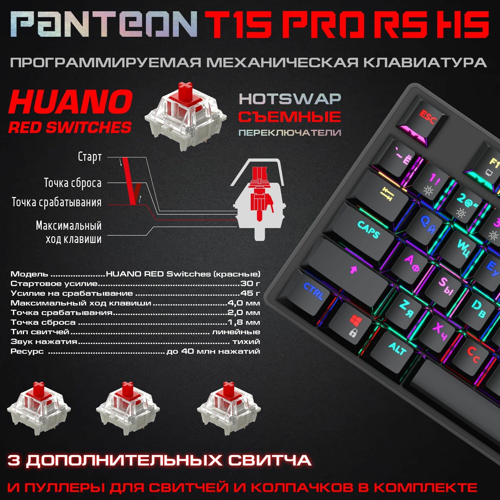 Механическая программируемая клавиатура С rgb-подсветкой PANTEON T15 PRO RS HS черная интересное:
