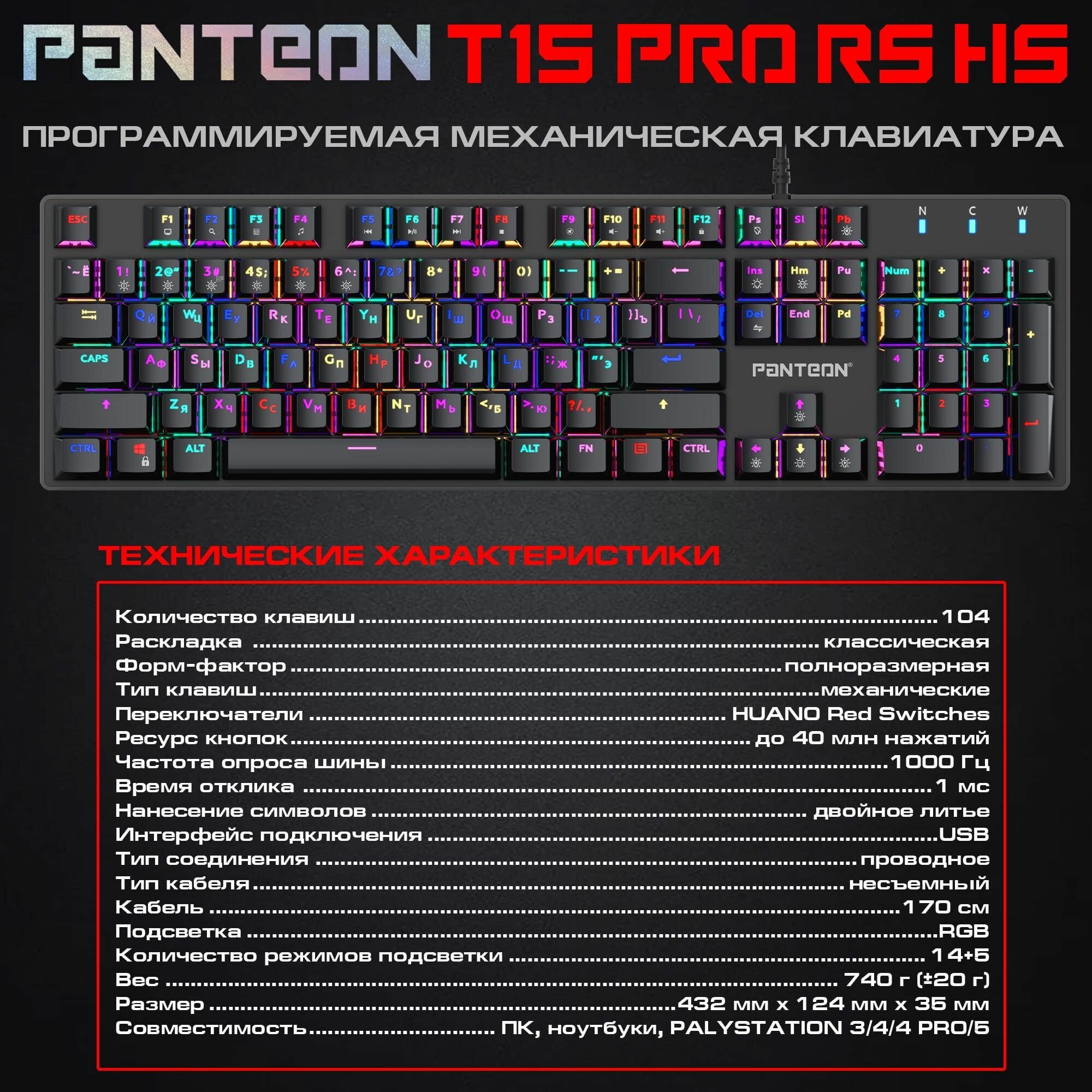 Ниже Вы можете прочитать отзывы на Механическая программируемая клавиатура С rgb-подсветкой PANTEON T15 PRO RS HS черная, ознакомится с подробными характеристиками, посмотреть интересные обзоры и фотографии на Механическая программируемая клавиатура С rgb-подсветкой PANTEON T15 PRO RS HS черная.