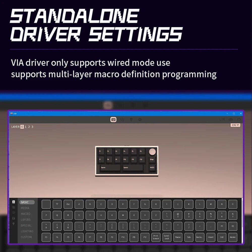 | Комплектация | Мини-клавиатура/ Шнур USB - Type-C/ Адаптер USB мама - Type-C мама/ USB приемник 2.4ГГц/ Съёмник кейкапов и свитчей/ Инструкция |