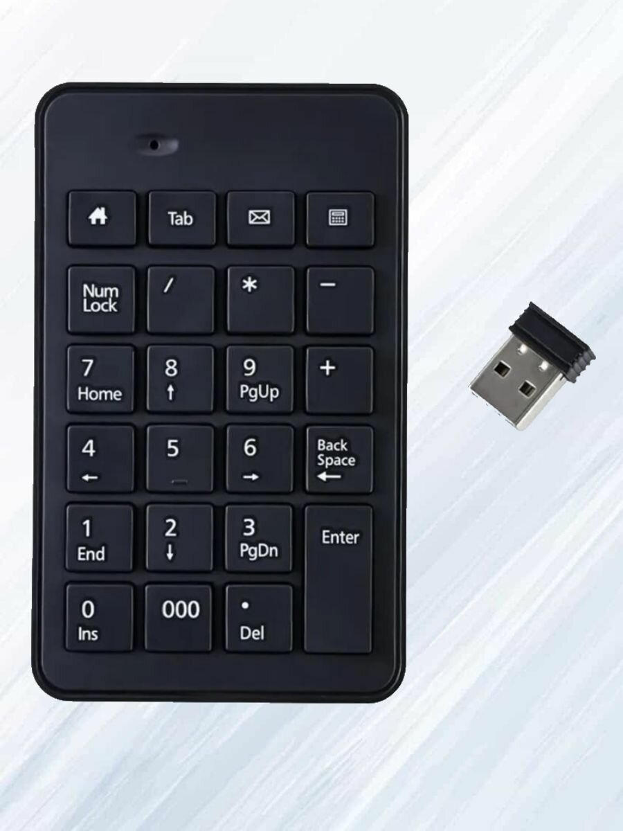 | Комплектация | Беспроводной NumPad, адаптер USB. Обратите внимание! Батарейка ААА в комплект не входит! |