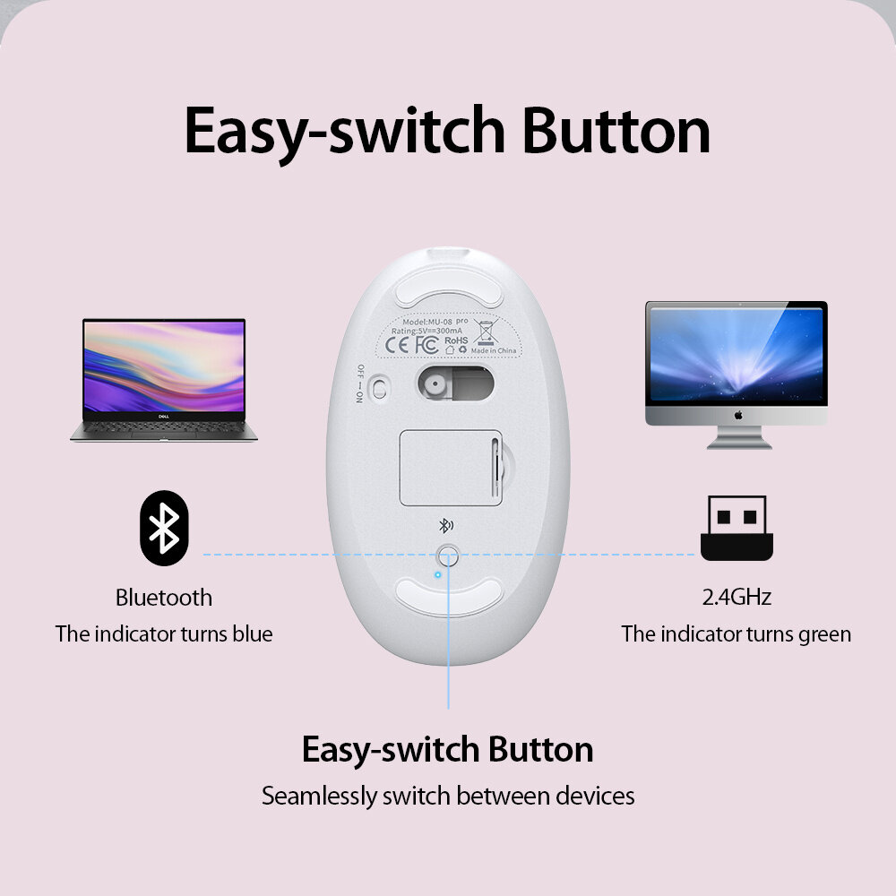 Мышка беспроводная Dux Ducis CM Series прозрачная, подключение USB (2,4 ГГц) и Bluetooth - белая