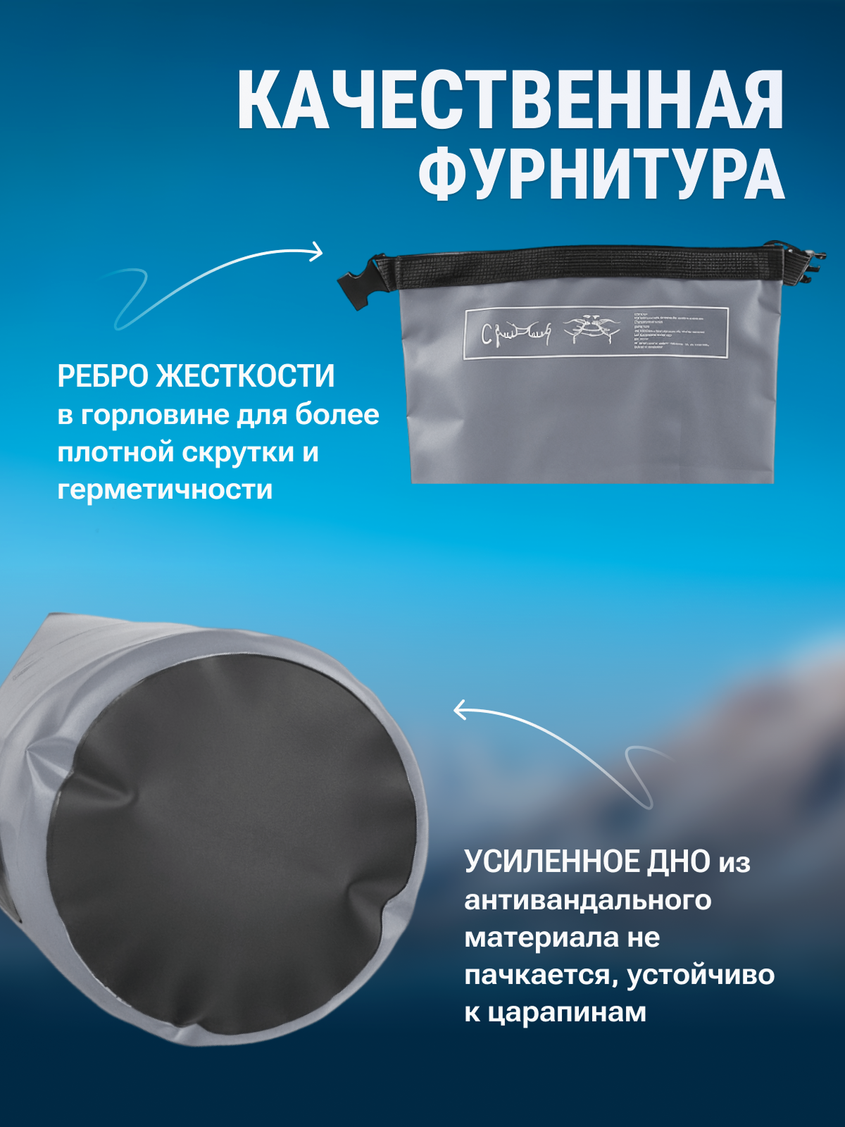 СохранитьГермомешок, водонепроницаемый, водоотталкивающий серый 10 литров, Water Proof Bag интересное: