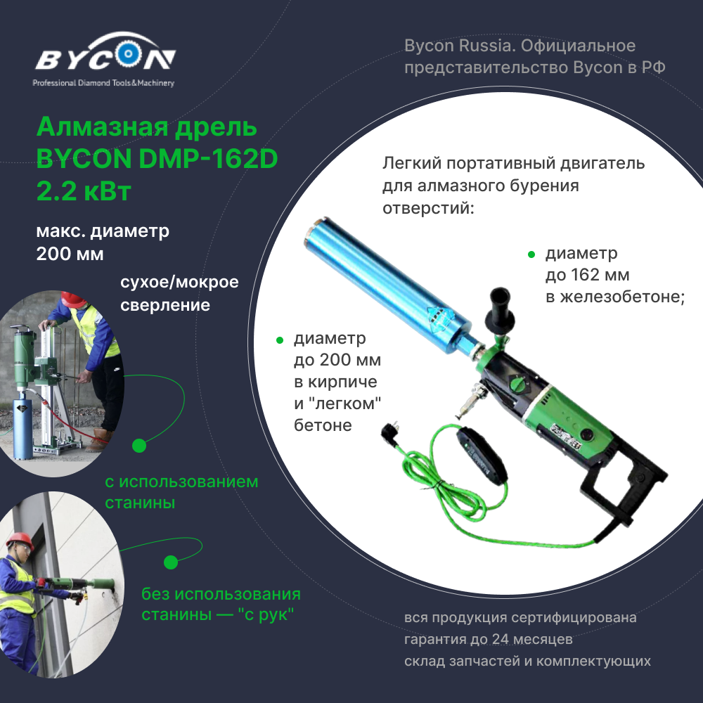 BYCON Дрель алмазного бурения DMP-162D 2200 Вт для сухого и мокрого сверления бетона интересное: