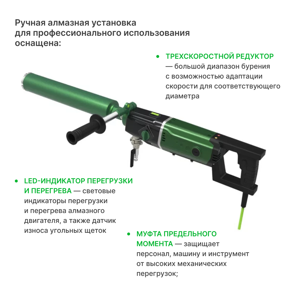 | Макс. диаметр сверления алмазной коронкой | 200 мм |