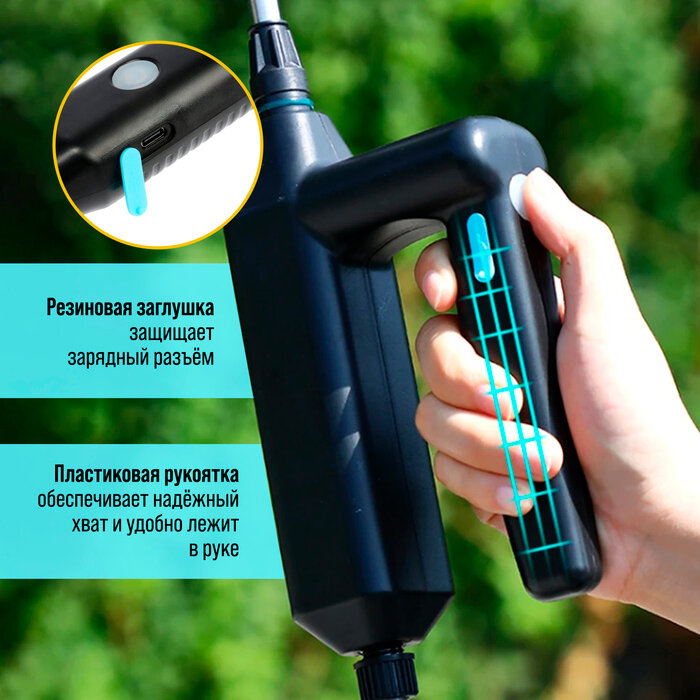 Опрыскиватель аккумуляторный, 7.4 В, 2.4 Ач, Li-on, 0.8 л/мин, 2 насадки, шланг 5 м
