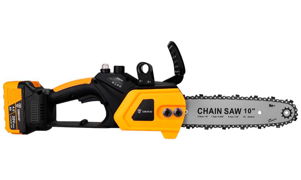 Пила цепная аккумуляторная Deko DKCHS 20, 10', 20В, 1x4.0Ач, з/у, черно-желтый интересное: