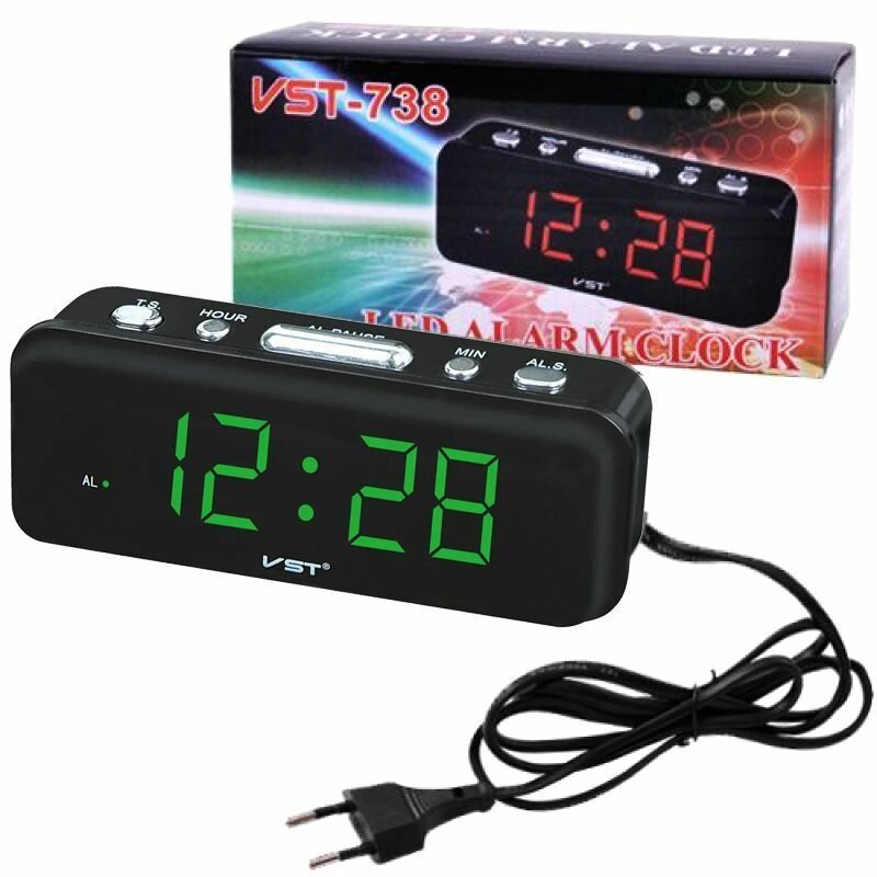 Сетевые часы VST738-4 220В зел. цифры+сетевой кабель интересное: