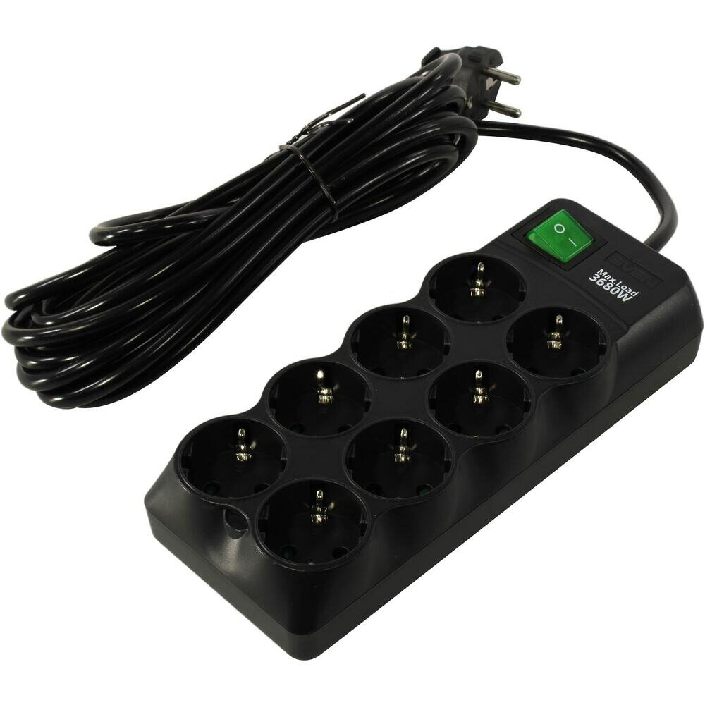Сетевой фильтр Sven SF-08E-16 8 евро розеток, 1,8 м, черный
