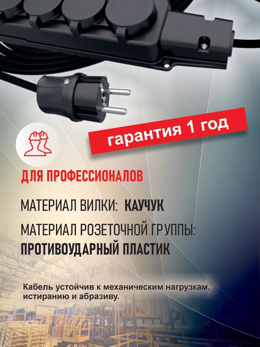 Удлинитель силовой строительный без заземления NE-AD 2x0,75 10м, 4 розетки с крышками интересное: