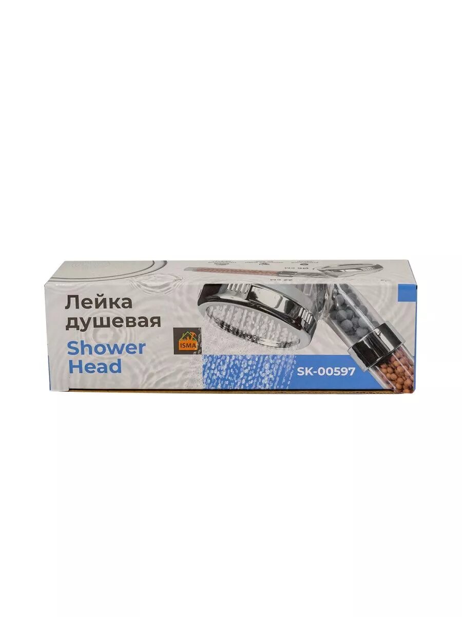 Лейка душевая (поликарбонат/нерж.сталь,L-22см, -6см,фильтрация-ионная,0-80С,массаж,экон. воды до 30%) ISMA ISMA-SK-00597
