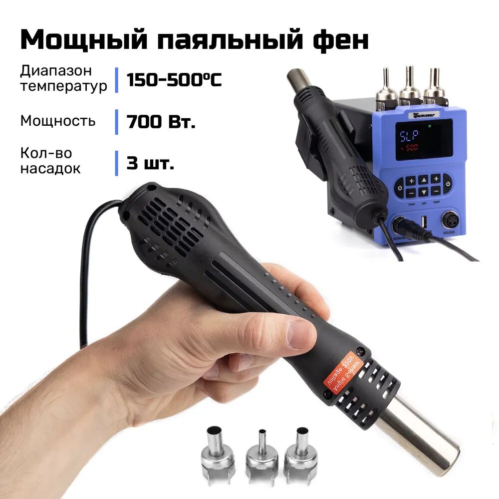 Паяльная станция с феном Sumsour 868D, паяльный фен с насадками, 700 Вт