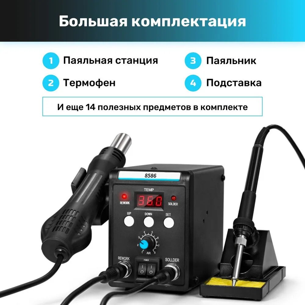СохранитьПаяльная станция с феном и паяльником Sumsour 8586, 750 Вт, 15 предметов интересное: