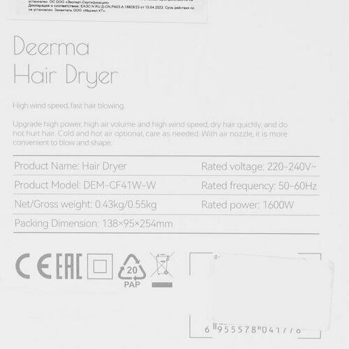 Фен deerma Hair Dry DEM-CF41W-W White