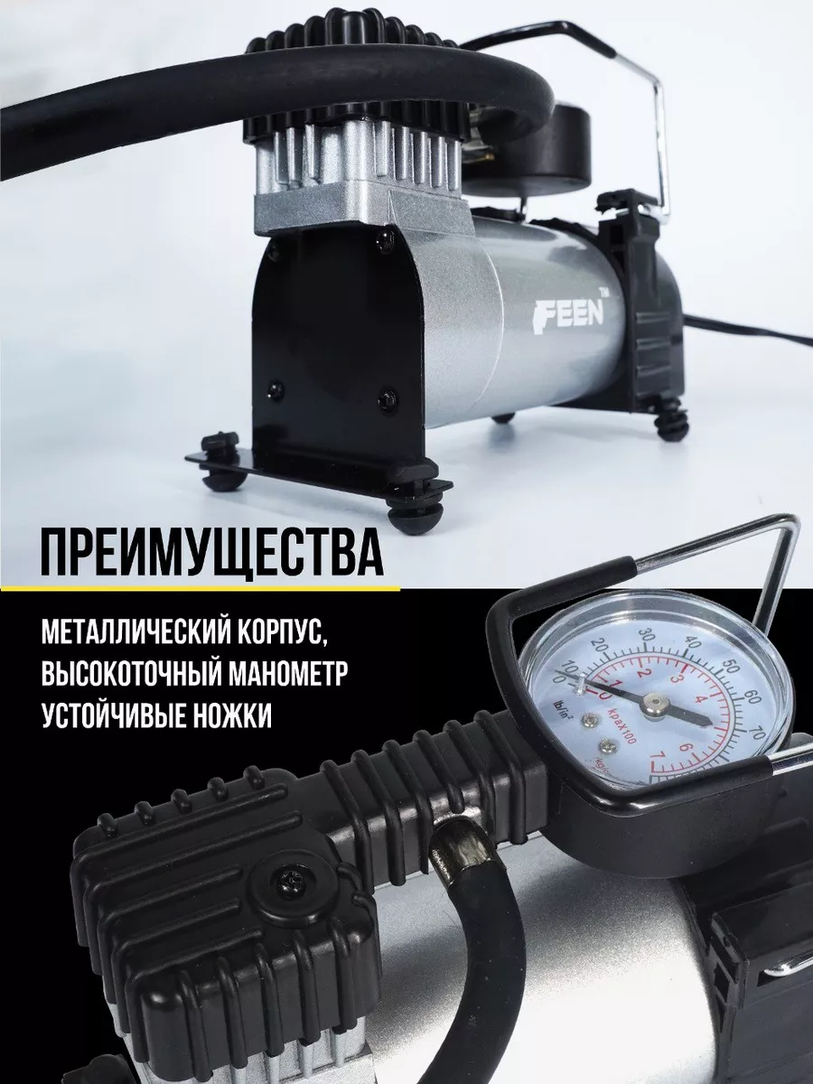 Компрессор автомобильный FEEN воздушный, насос в машину от аккумулятора, 60 л/мин