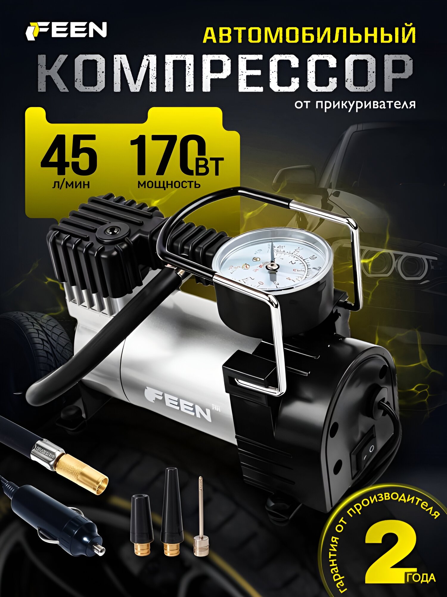 Купить Компрессор автомобильный от прикуривателя 45 л/мин FEEN, насос автомобильный 170 Вт
