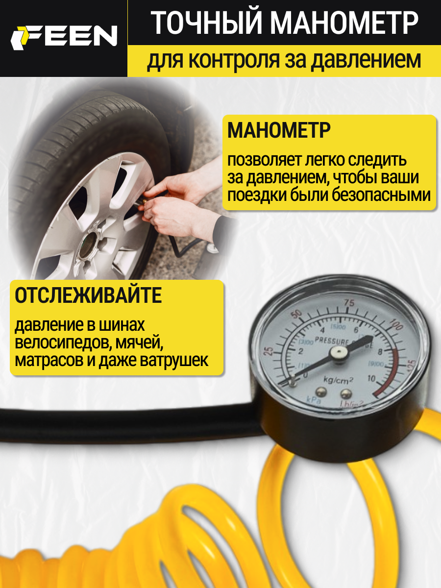 Автомобильный компрессор для шин FEEN 45 л/мин, насос усиленный