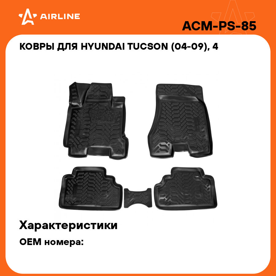 Купить Ковры для Hyundai Tucson (04-09), 4 шт, выс. борт, 3D с подпятником, ТЭП, черн. ACM-PS-85 AIRLINE