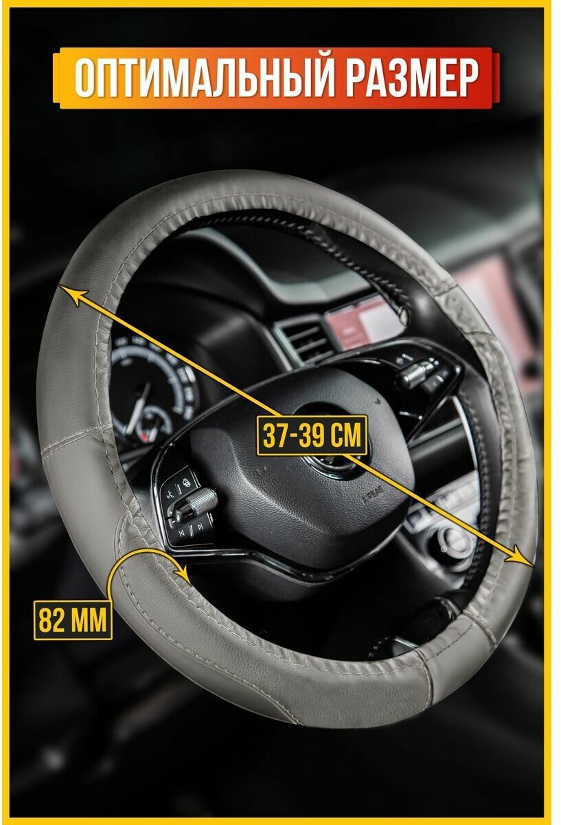 Оплетка на руль Top-12 SKYWAY M (37-39) серый экокожа, S01102501