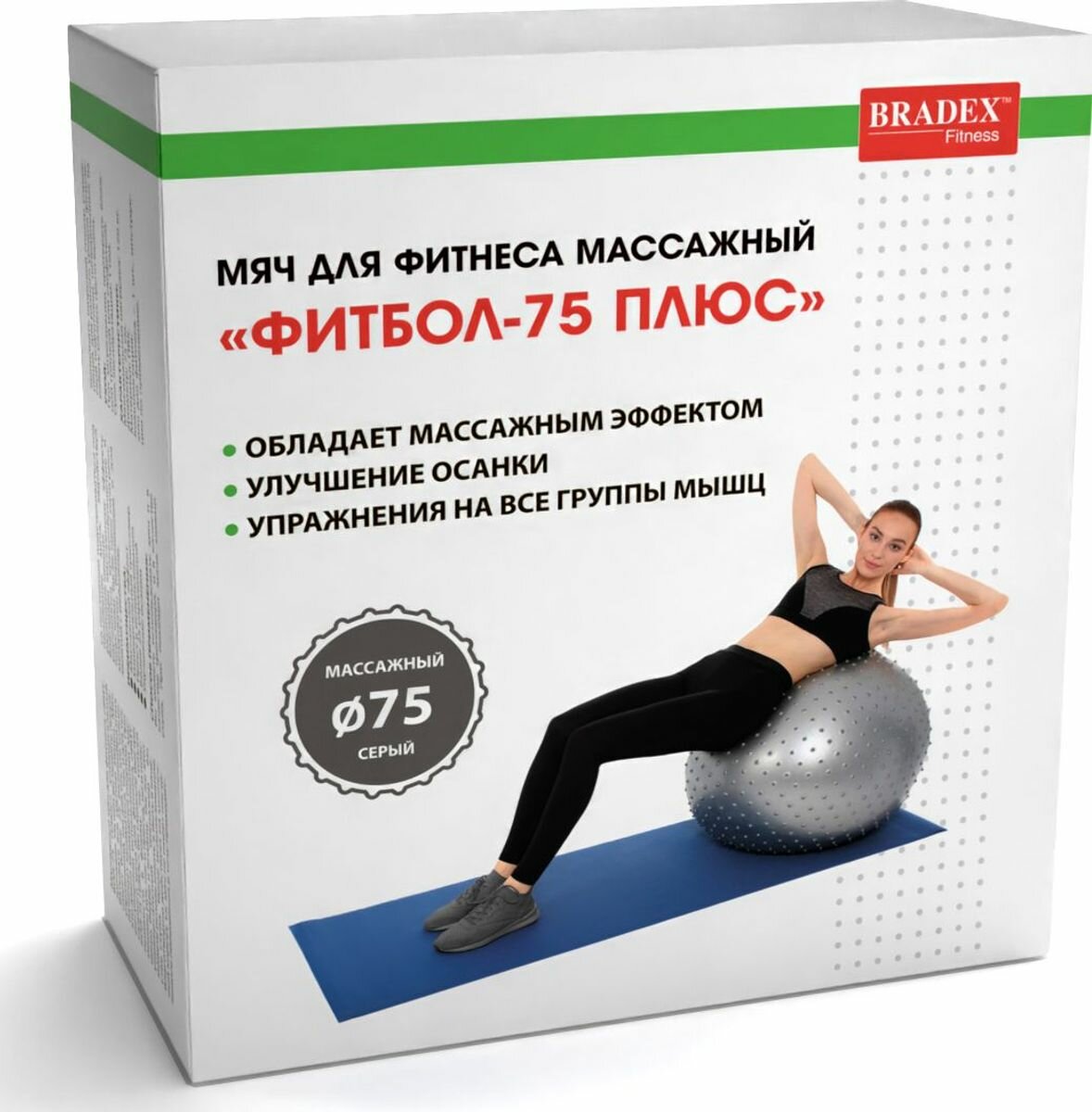 Мяч для фитнеса, массажный BRADEX «ФИТБОЛ-75 плюс» SF 0018 серый
