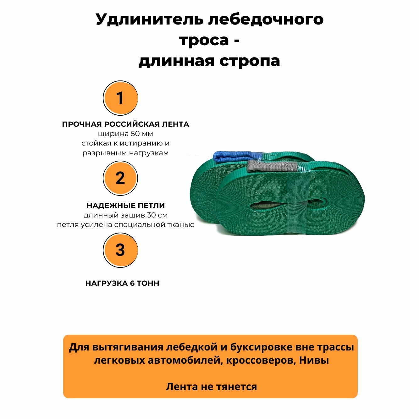 | Дополнительная информация | удлинитель троса лебедки , длинная буксировочная стропа, статический трос |