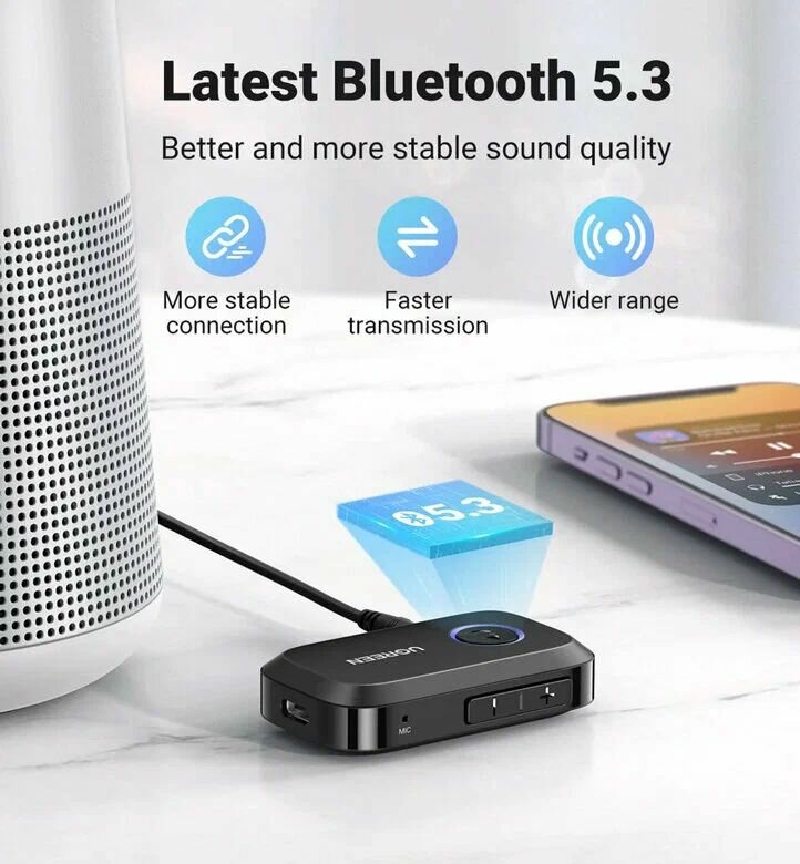 Ресивер Bluetooth UGREEN CM596 (90748) Car/Home Bluetooth 5.3 Receiver Audio Adapter интересное: