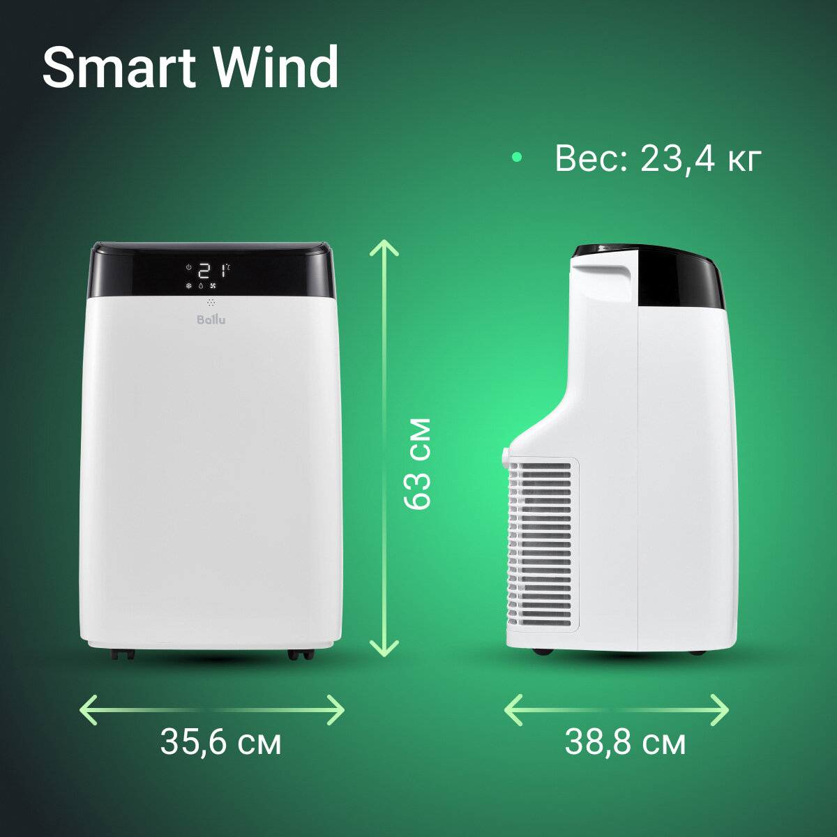 Мобильный кондиционер Ballu BPAC-09 SW/N1 Smart Wind
