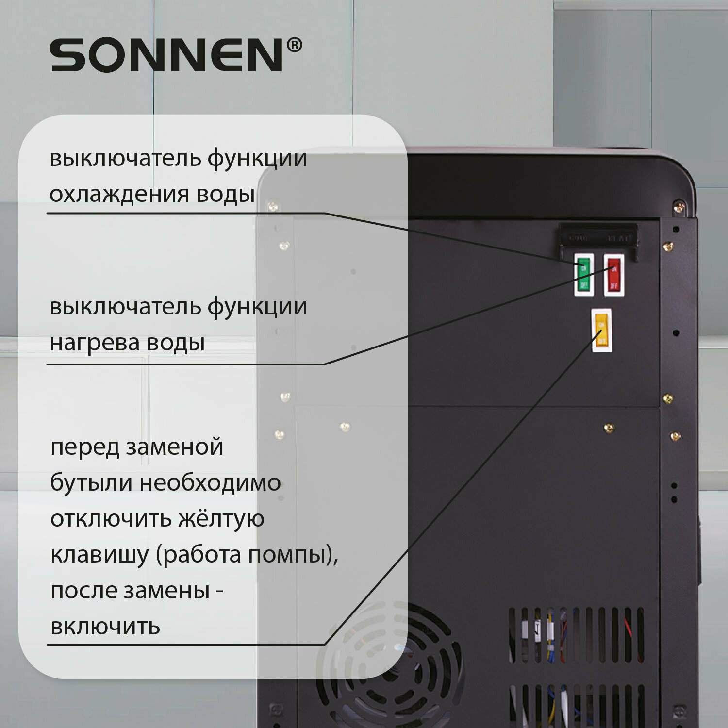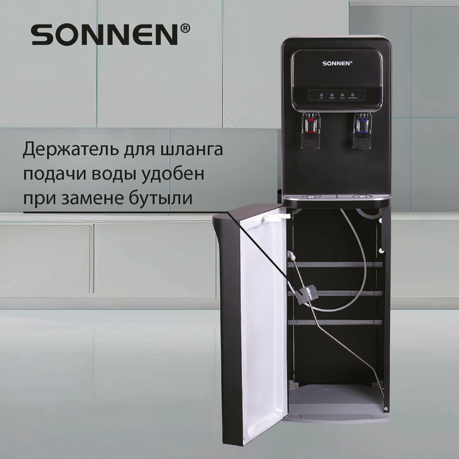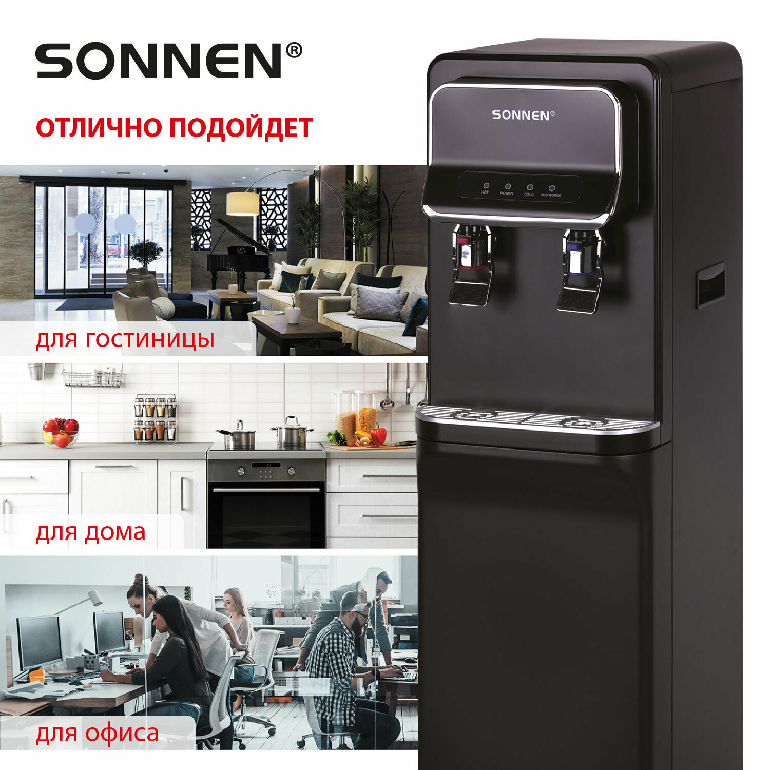 Кулер для воды напольный с нагревом и охлаждением, нижней загрузкой, диспенсер с 2 кранами черный, Sonnen FSE-02WB, 456169 интересное:
